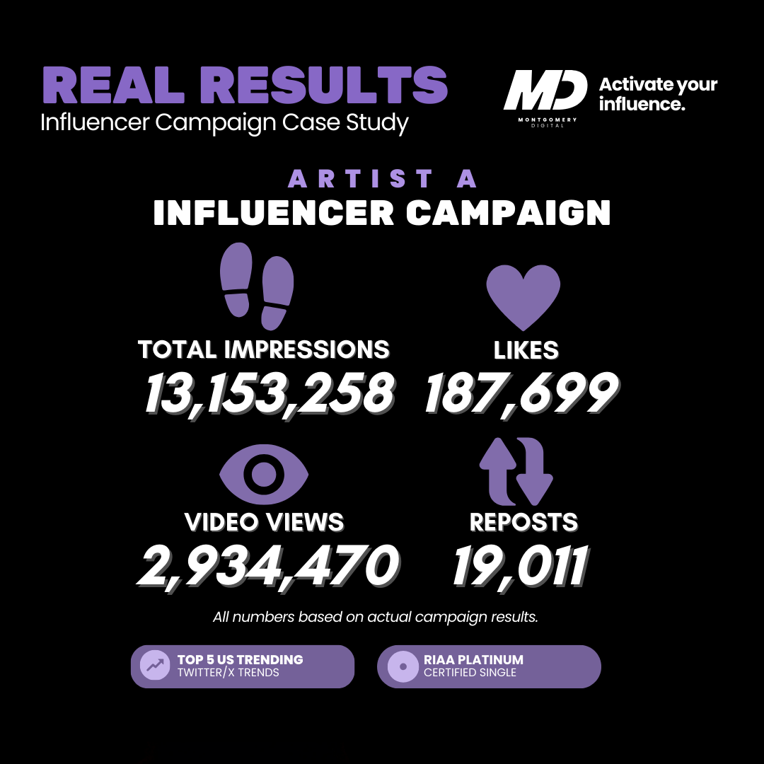 In campaigns for this R&B artist, we worked with influencers on twitter; increasing brand awareness and inspiring organic engagements.